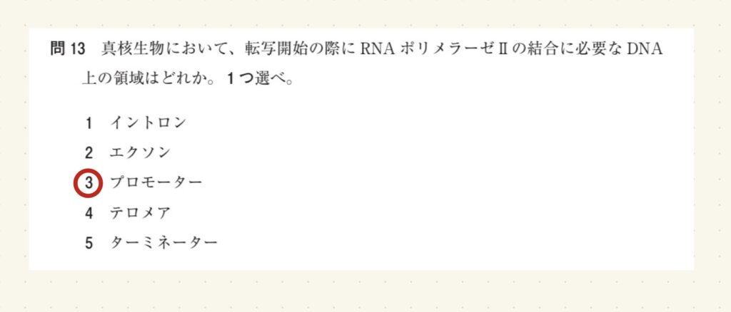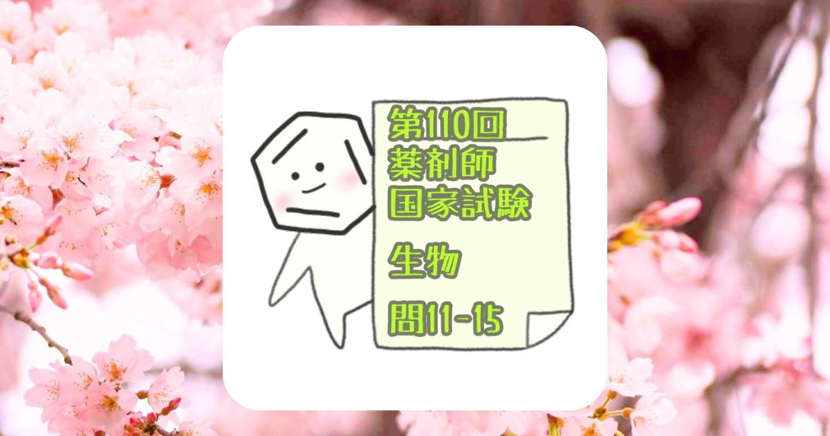 第110回薬剤師国家試験 必須生物 問11-15を解いてみました。