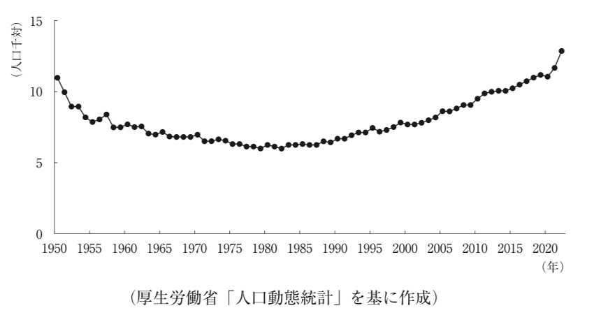 下図の年次推移を示す我が国の人口統計指標はどれか。1つ選べ。