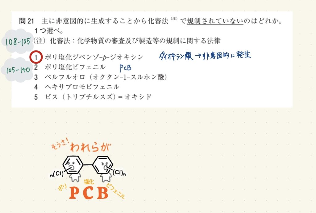 主に非意図的に生成することから化審法(注)で規制されていないのはどれか。1つ選べ。