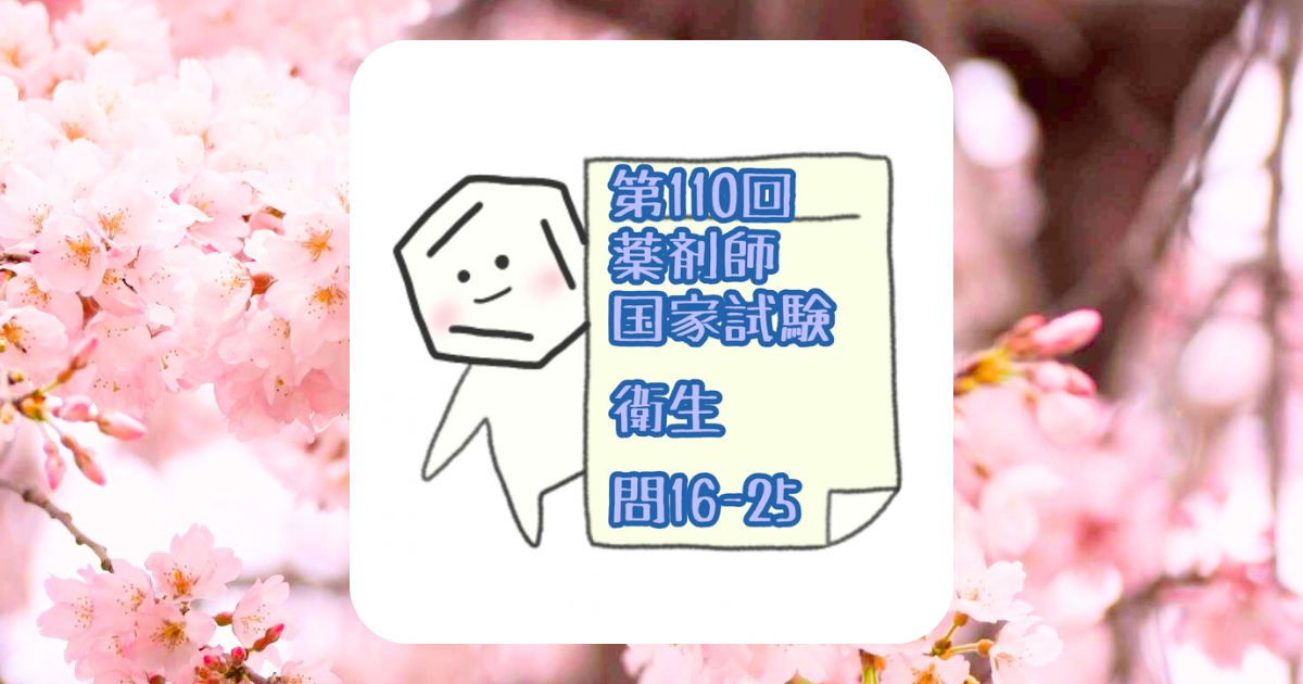 第110回薬剤師国家試験 必須衛生 問16-25を解いてみました。